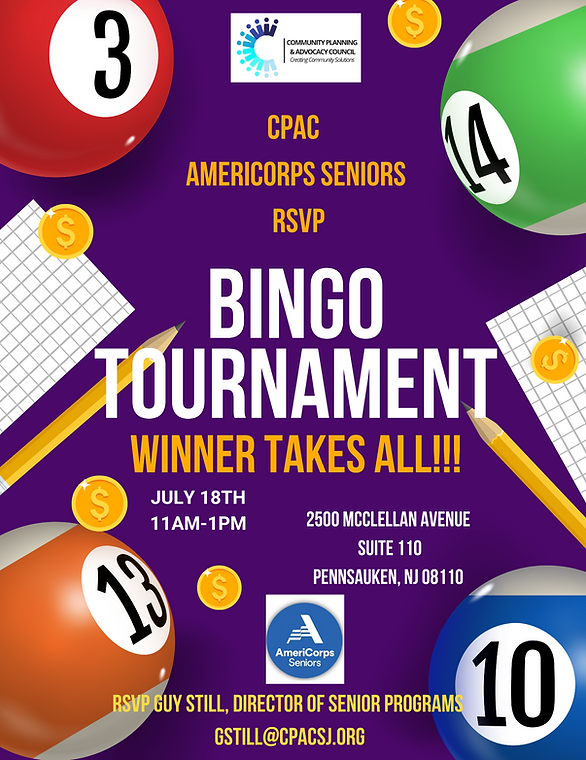Join CPAC AmeriCorps Seniors for a fun-filled Bingo Tournament!
